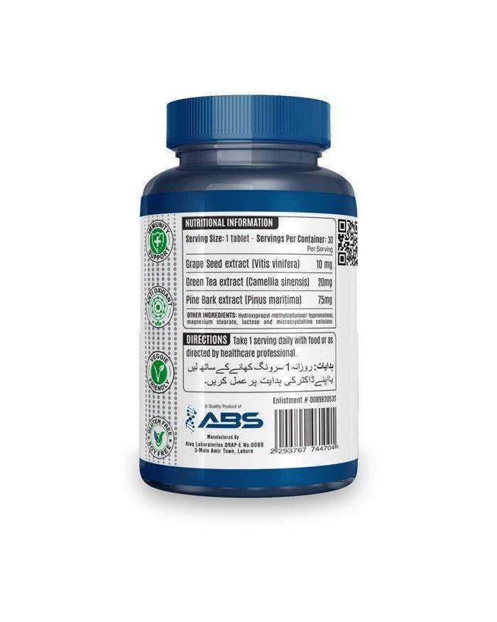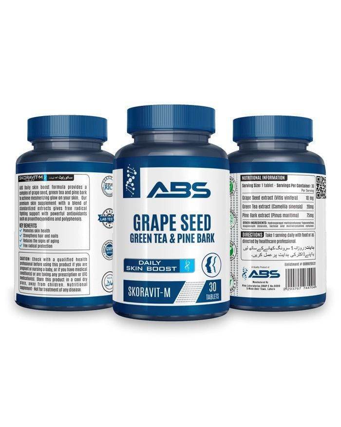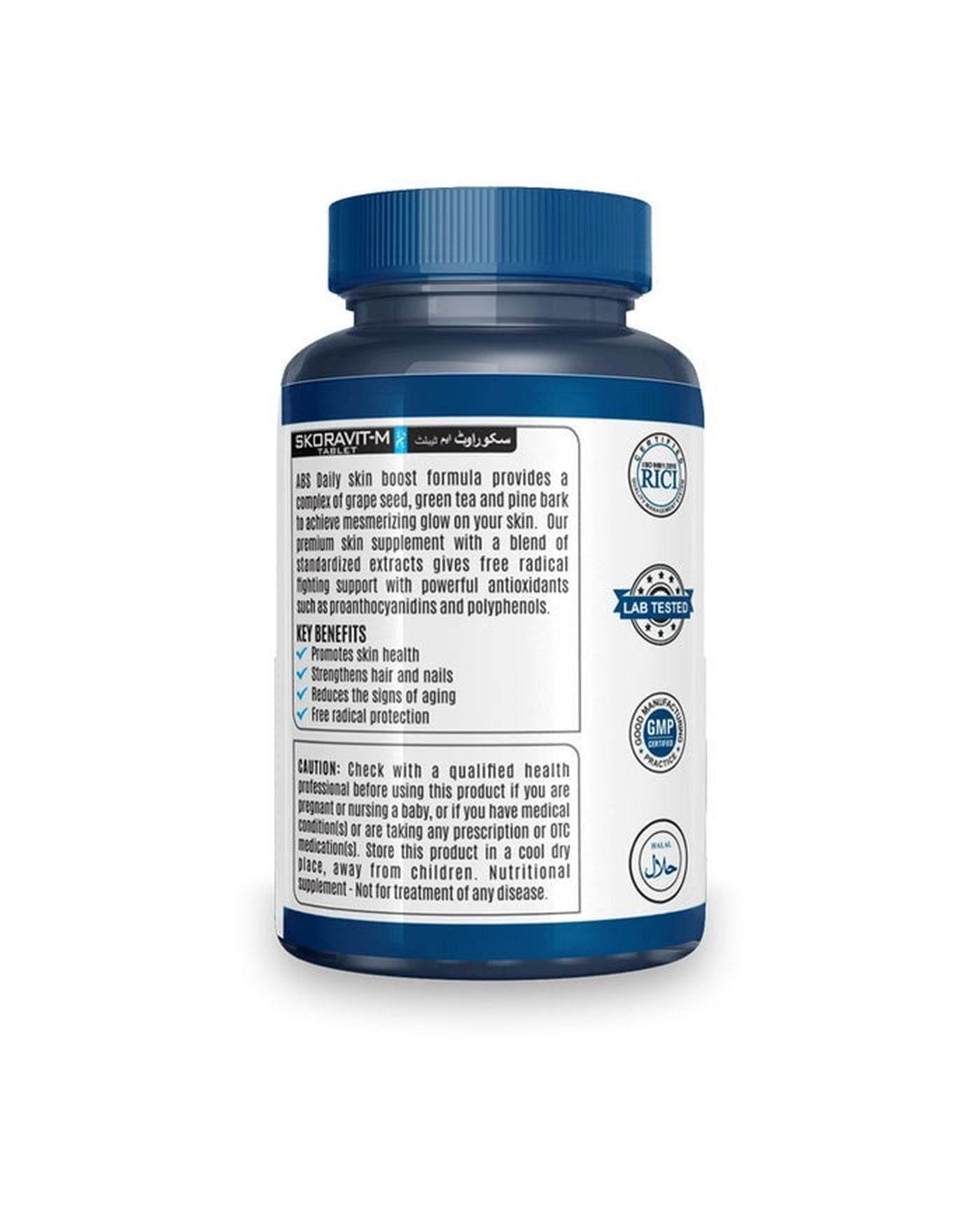 ABS Daily skin boost formula provides a complex of grape seed, green tea and pine bark to achieve mesmerizing glow on your skin. Our premium skin supplement with a blend of standardized extracts gives free radical fighting support with powerful antioxidants such as proanthocyanins and polyphenols.